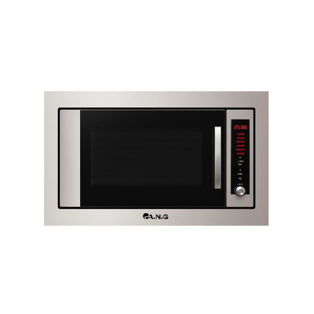 Experience professional-grade cooking with the ANG2500 25L Built-In Convection Microwave Oven, featuring a premium 304 stainless steel cavity for superior durability and hygiene. This high-performance appliance combines 1100W power with advanced convection technology to deliver exceptional results for grilling, steam cooking, and convection drying. The comprehensive function set includes sensor cook, speedcook with quartz halogen bulb, sterilize mode, and true microwave technology, making it ideal for diverse cooking needs. Digital timer control ensures precision, while the glass housing provides modern aesthetics and easy maintenance. Safety features include child lock and touch control for modern family convenience. With free spare parts service and 1-year warranty, this versatile microwave is the perfect choice for hotels and households demanding reliable, multifunctional kitchen equipment.