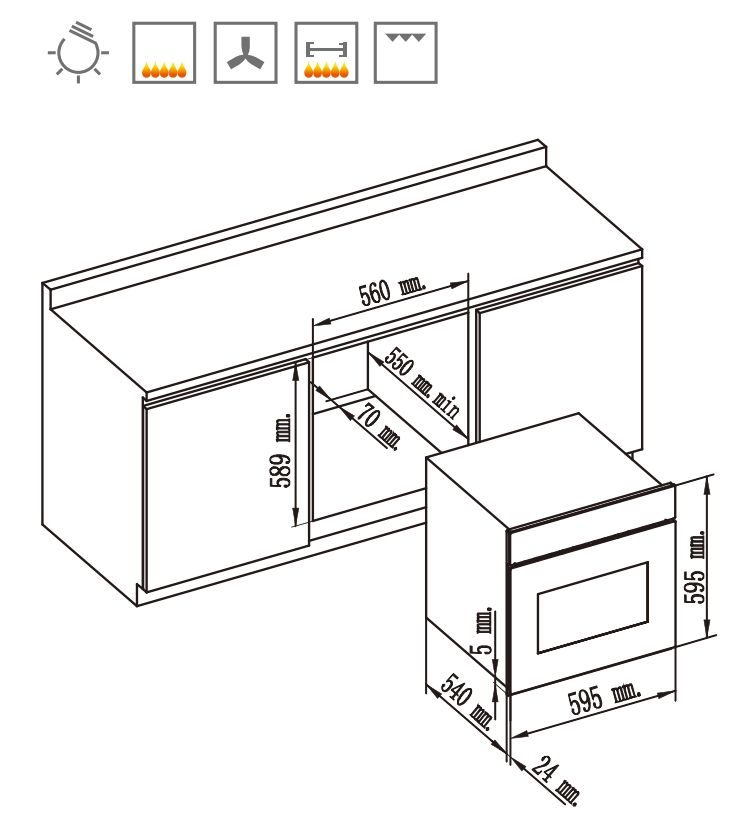 • Style: Built‑in installation 60 cm air fryer oven with slim depth.